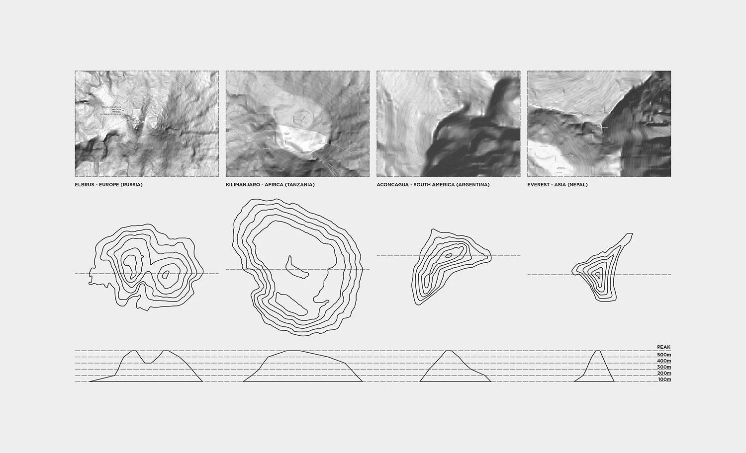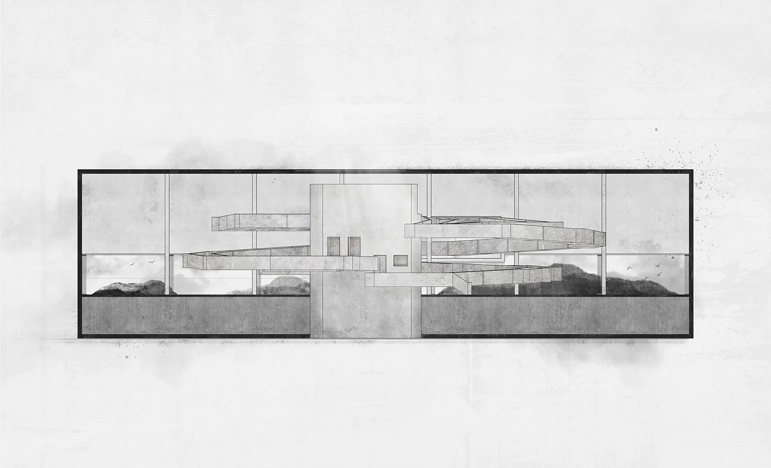 This project is about generating feelings in a space, making one experience architectural space as a natural one. Combining thoughts, memories and atmosphere to elaborate the experience of being up in the mountains. It is not about recreating the mountain itself as a form, but the feeling of one through architecture, textures, lighting and vision.